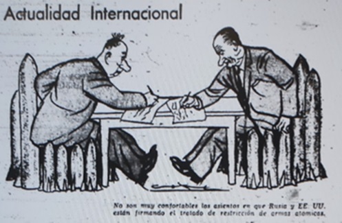 La mayor comunicación del conflicto entre la URSS y EEUU en los medios nacionales a inicios de la década de 1960 fue fruto de las tensiones globales en Berlín, la reanudación de los ensayos atómicos y la tensión regional derivada de la Revolución Cubana, entre otros procesos simultáneos. En todos los medios revisados, con sus matices, es posible encontrar caricaturas que presentan una lógica maniquea donde lo malo, lo feo y lo moralmente reprochable se funden en el enemigo, tanto en la caracterización de las potencias, como en los principales enfrentamientos y tensiones entre ellas.