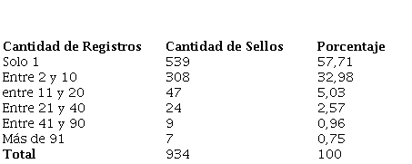 Durante el periodo analizado se contabilizaban un total de 934 entidades o personas que registraron un libro bajo alguna de las temáticas/disciplinas de las ciencias sociales en ISBN Chile. Si se observa la Tabla 3, se aprecia que más de la mitad del total de sellos (57,7%) registraron solo 1 título en el periodo, seguido por aquellos sellos que registraron entre 2 y 10 títulos (32,9%). Los sellos que registraron más de 91 títulos, no sobrepasan el 1% del total de sellos. Pese a que por motivos de extensión, no es posible exponer la lista completa de sellos, podemos mencionar que la mayoría de aquellos sellos que registraron solo 1 título están registrados a nombre de personas naturales, por lo que se trataría en su mayoría de autores-editores o autopublicaciones.