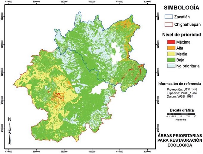Priority areas for ecological restoration and reference sites in Chignahuapan-Zacatlan region