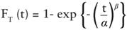Estimando los parámetros de escala y forma, esta función de densidad se aproxima al fenómeno observado en este trabajo. Con el modelo ajustado, se estimó el tiempo en horas en las cuales alcanzaría 10% de degradación del acabado. Para los barnices que no lo alcanzaron en el tiempo establecido de la prueba, se estimó el tiempo despejándolo de la expresión (1); es decir, el tiempo está dado por: