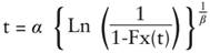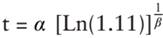 (2)Debido a que el fabricante sugiere dar mantenimiento cuando se observa una degradación de la superficie de 10%; esto representa el límite de falla para el tiempo de exposición t, quedando la ecuación (2) de la siguiente manera: