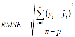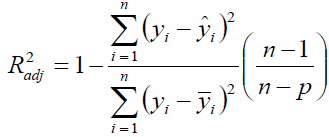 are the measured, predicted and mean values of the dependent variable, respectively; n is the total number of observations used to fit the model; p is the number of model parameters; k = p + 1; and