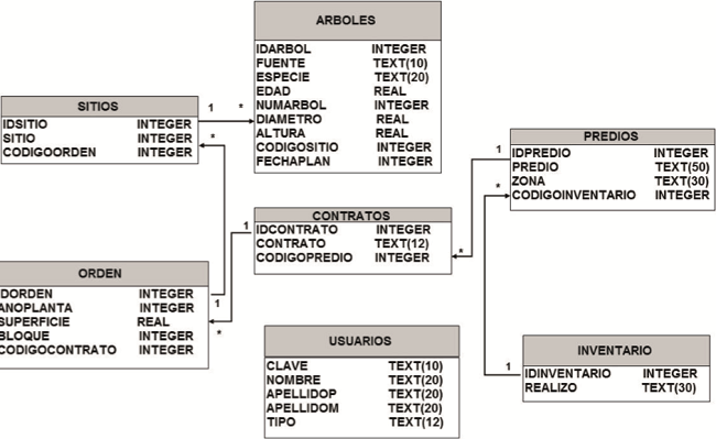En el análisis, diseño y modelado de datos se utilizó el software Edraw Max® (EdrawSoft, 2009), Microsoft Access® (Microsoft, 2010) y el lenguaje de estructurado de consulta SQL® (IBM, 2008); la base de datos se realizó con el gestor SQLite® (Hipp, 2013), con la ayuda de la interfaz gráfica de desarrollo Sqlitestudio® (Salawa, 2013). Para la codificación del software se recurrió al lenguaje de programación Java® (Sun Microsystems/Oracle Corporation, 2006), a través de la interfaz gráfica Netbeans IDE® (Sun Microsystems/Oracle Corporation, 2013).
