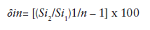 δin = tasa de cambio promedio anual para la clase i en el periodo evaluado.
