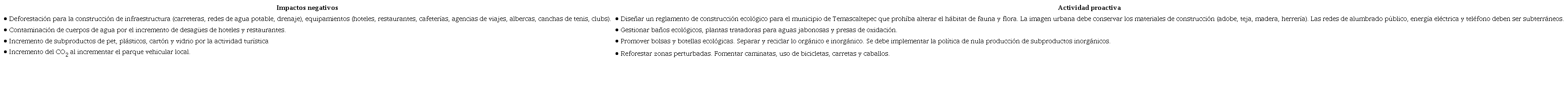 El modelo de turismo biocultural debe considerar la complementariedad entre riqueza natural, cultural y actividades productivas, así como amortiguar los impactos ecológicos por medio de la propagación y reforestación de especies forestales nativas, endémicas y prioritarias, como T. micrantha y B. bipinnata. Además, debe establecer políticas ecológicas, algunas de ellas son: establecer fechas de senderismos en los 11 pueblos (Tabla 5) en relación con la época de reproducción de la biodiversidad y festividades. También se debe establecer la cantidad permitida de extracción de hongos, quelites, plantas medicinales y otros recursos útiles. Queda prohibido la extracción de especies endémicas, que estén bajo amenaza y protección especial; solo se deben realizar caminatas etnobotánicas y micológicas en zonas permitidas y que no comprometan la biodiversidad local, así como garantizar la regeneración de especies, ya que es el núcleo central del desarrollo sustentable (Ruiz-Rosado, 2006). El turismo biocultural debe tener cuidado con los impactos ecológicos y establecer un plan proactivo, a partir de los siguientes puntos: