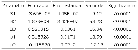 En una primera etapa, el ajuste estadístico de las ecuaciones se realizó con la base de datos bajo un arreglo en pares no traslapados; se usó el método de máxima verosimilitud con información completa (FIML) con el procedimiento Model del paquete estadístico SAS/ETS v. 9.3 (SAS Institute Inc., 2011).