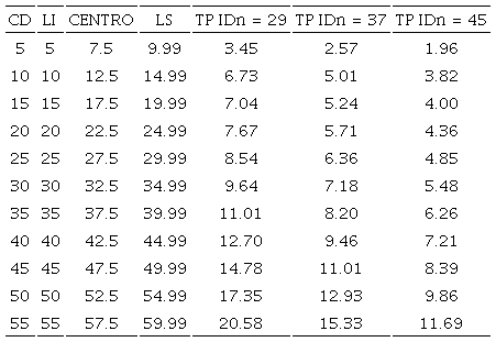 La EcD5 puede invertirse, de modo que, para cualquier IDn, pueda determinarse con la expresión 11 la edad (t) a la que se logra obtener la dimensión de determinado Dn de interés comercial requerido por la industria (aserrío, chapa, etc.), lo que da lugar al concepto de turno tecnológico, en donde el tamaño del diámetro normal toma relevancia. Esta situación, en la praxis implica estimar los tiempos de paso (TP) por categoría diamétrica (CD).