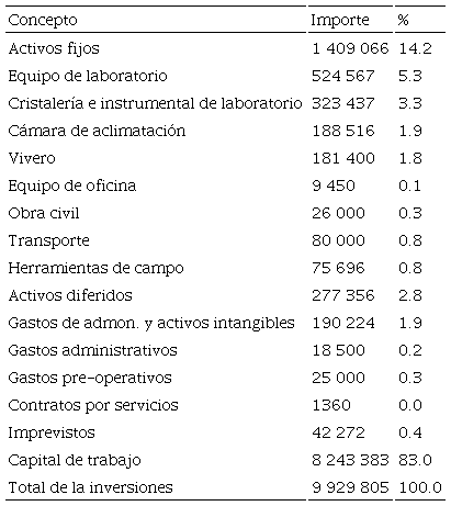 Usando el método del análisis financiero se estimó la viabilidad financiera del establecimiento de una empresa de micropropagación de árboles de olivo. Los resultados indicaron que se necesita una inversión inicial del MXN 9 929 805 (Tabla 1). El valor de los indicadores financieros se presenta en la Tabla 6.