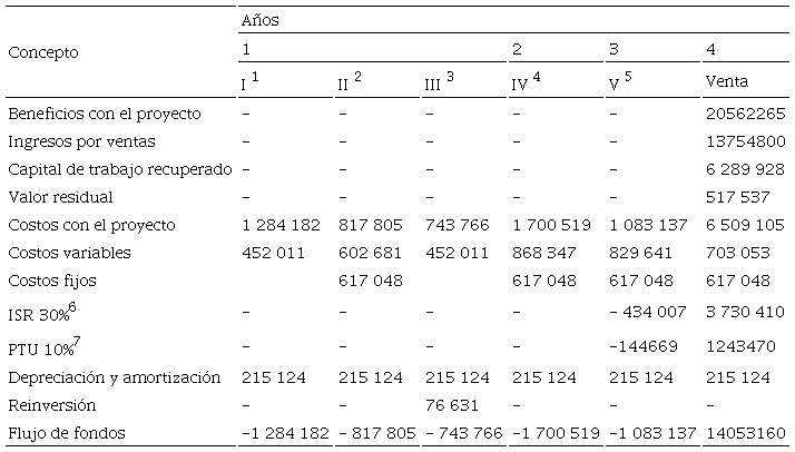 El VAN se calculó en un horizonte de cuatro años, pues en este método se tomó en consideración la duración de cada etapa según lo registrado en el apartado, y la TREMA fue de 17%, considerando el riesgo de inflación de 5% y la utilidad del inversionista de 12%.