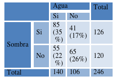Se tomaron medidas respecto a la posibilidad o no de acceder a sombra (1: si – 2: no) el disponer o no de agua para consumo (1: si – 2: no), al comportamiento y a variables fisiológicas.