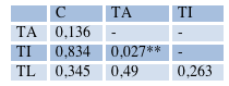 Para el análisis estadístico los resultados se presentaron como valores medios y rangos intercuartiles (IQ). El análisis de la variancia no paramétrico (Kruskal Wallis) al 5% de la diferencia del recuento de HPG entre M1 y M2 mostró que existen diferencias significativas entre los grupos (p=0,01235), sin embargo, el análisis de prueba de los rangos con signo de Wilcoxon evidenció que solo se observan diferencias significativas entre TA con respecto a TI (p=0,027) para este grupo de animales bajo las condiciones de estudio aplicadas (Tabla 4).