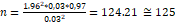 es el nivel de confianza y E el error máximo admisible en términos de proporción. Por lo tanto, con una confianza del 95% y en E=0,03 se obtuvo