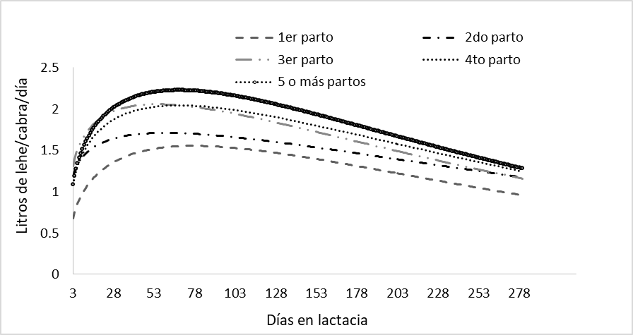 Curva de lactancia en función al número de partos de las cabras, de acuerdo al número de lactancias.