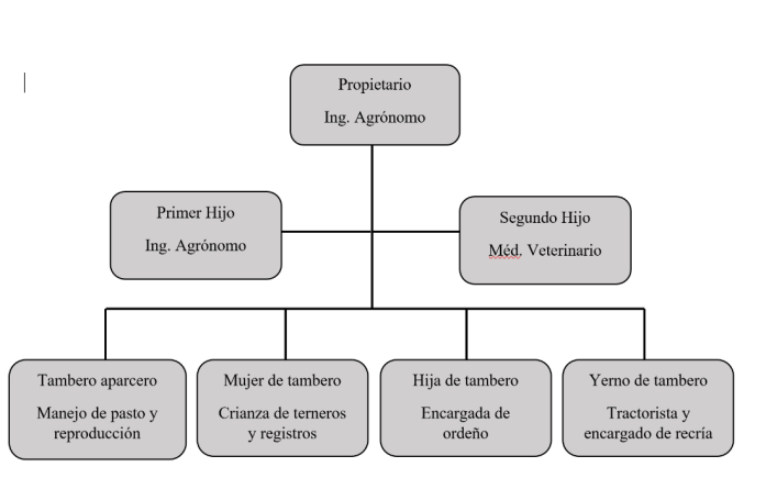 En 2017, el fallecimiento de la esposa del productor provocó una redistribución de las responsabilidades entre los integrantes de la familia, incorporándose hacia fines de ese año, el segundo hijo, profesional de la medicina veterinaria. En la actualidad, la empresa ha dejado de ser unipersonal, constituyéndose en una sociedad, dentro de la cual se están restableciendo los roles de los cuatro socios que la componen, encargándose los dos hijos del seguimiento técnico del establecimiento, el padre de familia de la administración y pormenores diarios; aunque la hija menor no tiene una participación directa en el manejo del establecimiento, está informada de lo que sucede en la empresa y manifiesta cierto interés en participar en un futuro.