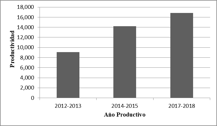 En la Figura 1 se observa como el crecimiento del rodeo se tradujo en un aumento de la productividad ajustada a lo largo de los ejercicios productivos analizados.