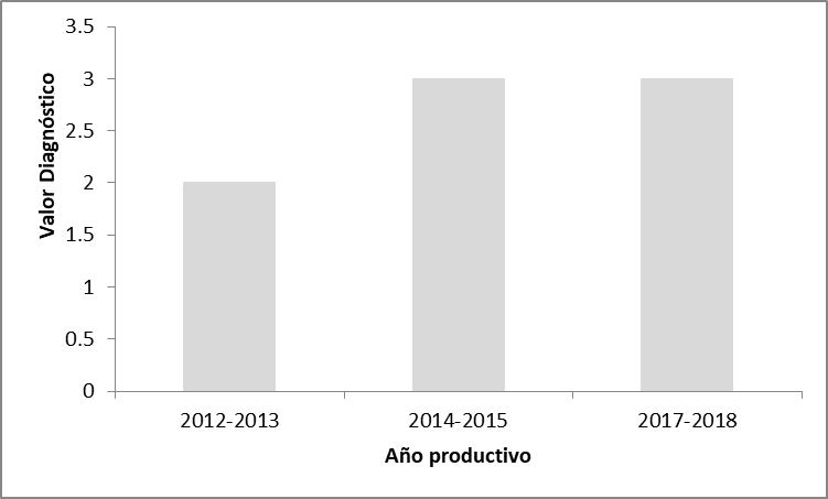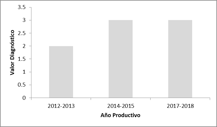 Los valores de la Figura 3 muestran la mejora que se observa en el último ciclo analizado. En cuanto a la calidad de vida del entorno el establecimiento se encuentra a 10 km de ruta pavimentada, centro de atención primaria de salud y escuela primaria. El pueblo es muy pequeño y cuenta con menos de 40 familias y escasas oportunidades de trabajo dentro de la comunidad. La ciudad más cercana con atención médica de calidad y colegios primarios y secundarios se encuentra a 30 km.