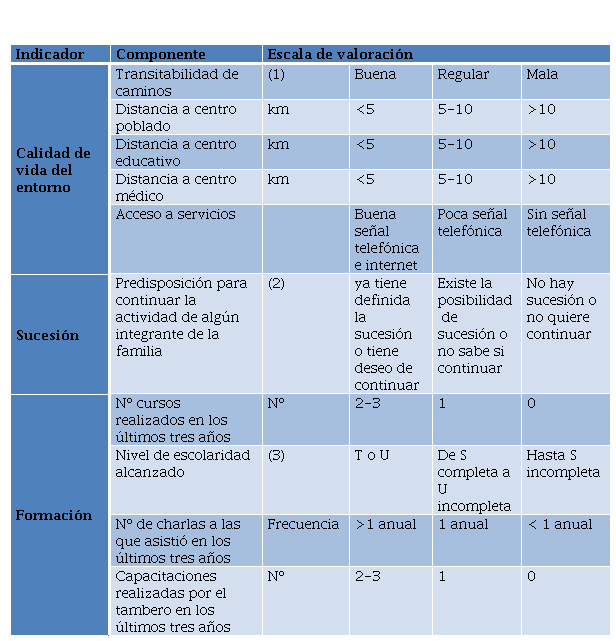 Calidad de vida del entorno: Se trata de un indicador compuesto, que tiene en cuenta características objetivas como las distancias para acceder a poblados, centros educacionales y de salud, y la disponibilidad de servicios básicos como electricidad y telefonía.