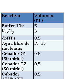 La reacción se realizó a un volumen final de 50 mL por muestra con la mezcla de reactivos según la Tabla 3.
