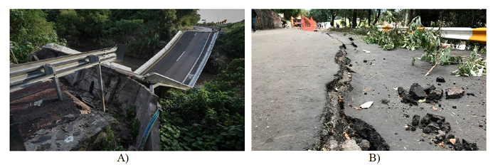 El sismo del 19S también dañó la infraestructura vial. De acuerdo con Caminos y Puentes Federales de Ingresos y Servicios Conexos (CAPUFE) y la Policía Federal, dentro de las afectaciones que se propiciaron están el colapso de un puente de la autopista México-Acapulco, tramo Cuernavaca-Chilpancingo 109+000, la aparición de grietas de aproximadamente 50 cm y un hundimiento de un metro en el kilómetro 25 de la carretera del Estado de México en dirección a Nicolas Romero con Santa Ana Jilotzingo y agrietamientos desde la calle Panorama hasta la calle Cocoxochitl, deformación del pavimento y desprendimiento del material en los muros de contención en la carretera Xochimilco-Tulyehualco (figura 12). Aunque no se cuenta con información sobre el tiempo de reparación de los primeros dos casos citados, está documentado que la carretera Xochimilco-Tulyehualco estuvo cerrada alrededor de 565 días, debido a que se requirió de reconstruir 674 m de muros de contención, recuperar 3100 m2 de áreas verdes, así como de restaurar la carpeta asfáltica en 11200 m2, rehabilitar 570 m2 de banquetas y 313 m de guarniciones, renovar los señalamientos viales e instalar 10 postes de luz ahorradores de energía en las vialidades aledañas.