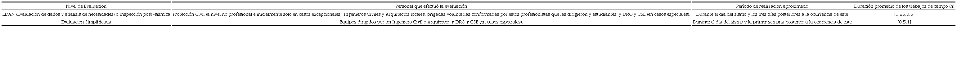 En ocasiones se llevó a cabo una evaluación simplificada en lugar de una inspección post-sísmica, en la cual se clasificó el nivel de daño global de la estructura y se identificó si ocurrieron otros daños en elementos como vidrios, acabados, plafones, fachadas, bardas, pretiles, escaleras, elevadores e instalaciones. Esta evaluación también se efectuó en edificaciones que se consideraron con dudas tras la inspección post-sísmica.