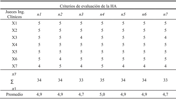 Evaluación de la HA a través de panel de juicio de expertos