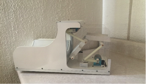 In Figure 12 the final prototype of the SYRR-NERI is shown, and finally, in Figure 13 a half work sequence of the SYRR-NERI is illustrated. As can be observed, the sequence is hand extension/fingers extension, which is according with the specifications.