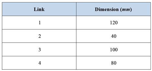 where a is the length of link 2, b is the length of link 3, c is the length of link 4 and