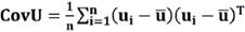 (14)Paso 2: Cálculo de matriz de covarianza denotada como CovU mediante el producto externo de la matriz U consigo misma: