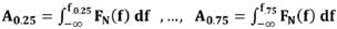 (2)Un ejemplo particular de Cuantiles son los Cuartiles, calculados aquí mediante la Ecuación (3), cuyos valores frecuenciales f0.25,. . ., f0.75 corresponden al valor frecuencial donde se acumula 0.25,…, 0.75 del área espectral por trama, que es lo que denotamos como coeficientes Cuartílicos. El cálculo del último Cuantil no es importante ya que siempre es igual a 1. Lo que resulta en un vector de 3 dimensiones o 3 componentes por vector resultante de una trama23.