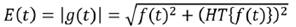 (6)La función g(t) es conocida como función analítica asociada a f(t). Dada una función en tiempo cuya parte imaginaria sea igual a menos la transformada de Hilbert de su parte real, su transformada de Fourier será causal. Análogamente, si una función temporal es causal, la parte real e imaginaria de su transformada de Fourier estarán vinculadas por la transformada de Hilbert. Se define a la envolvente E(t) de una función f(t) como el módulo de su función analítica:
