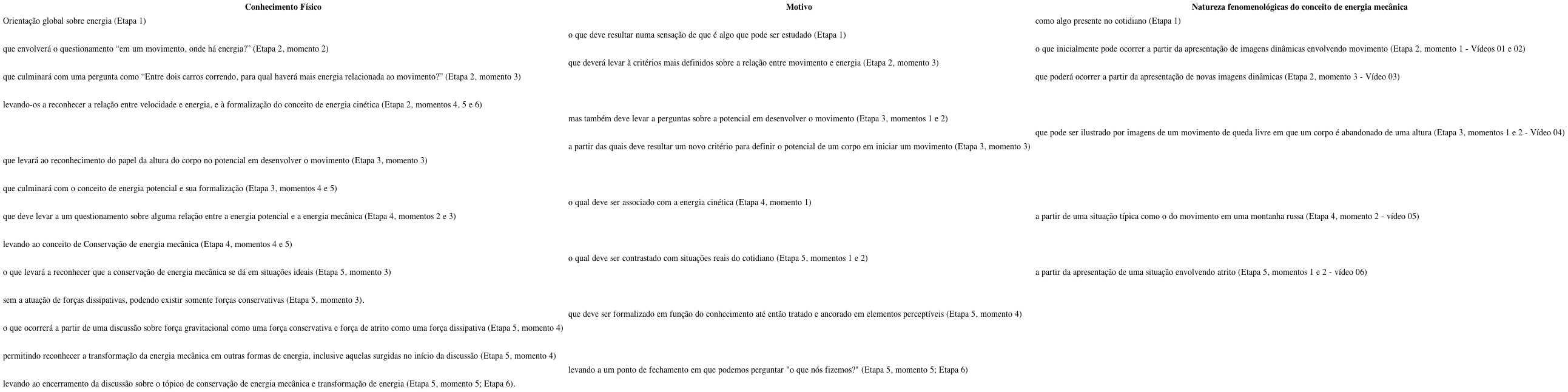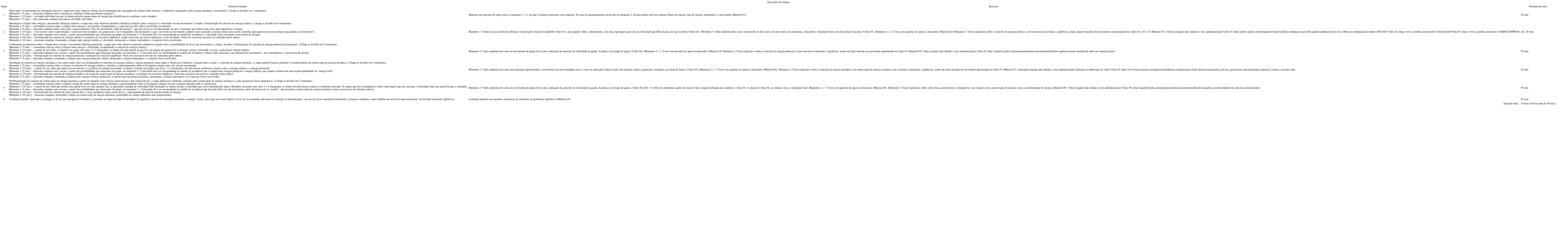 Uma vez que a AD feita em momentos em que a tela é congelada foi aprovada por alunos com e sem DV, foi organizada uma sequência didática para ensinar o conceito de Conservação de Energia.