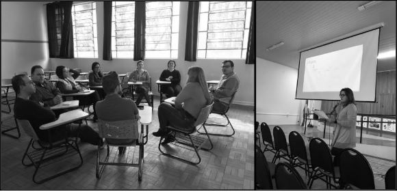 Para a construção das diretrizes curriculares, foi realizada uma oficina de curricularização da extensão, que permitiu aos docentes identificarem atividades didático-pedagógicas que articulem de forma efetiva o ensino, a pesquisa e, principalmente, a extensão, de forma regulamentada dentro do currículo. Isso significou incorporar atividades de extensão aos PPCs. Para isso, utilizou-se a estratégia think-pair-share. Inicialmente, foram apresentados casos de sucesso conduzidos em outros institutos federais. Após uma reflexão individual, os professores se reuniram em grupos e salas diferentes, a fim de preencherem um canvas específico, descrevendo qual atividade de extensão poderia ser incorporada à matriz do curso. Em seguida, os representantes de cada grupo ou curso socializaram as ideias que tiveram (Fig. 1).