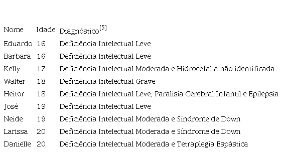 A pesquisa realizada foi qualitativa de caráter descritivo exploratório. Como procedimento de coleta de dados foram realizadas entrevistas semiestruturadas com nove jovens diagnosticados/as com deficiência intelectual e com seus familiares e responsáveis. Os/as jovens são alunos/as de uma instituição de educação especial na modalidade de Associação de Pais e Amigos dos Excepcionais (Apae) do interior do estado de São Paulo.