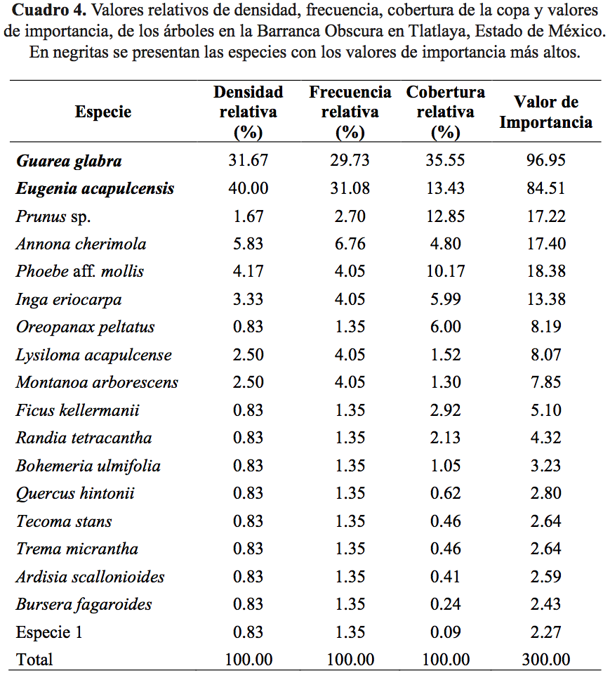 Keywords: Subdeciduous Tropical Forest, Mexico State, Tlatlaya, floristic, importance values.
