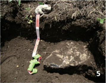 El objetivo del presente trabajo consistió en evaluar la fertilidad del suelo de seis parcelas y de un BMM en Santa María Chilchotla, Oaxaca, donde los mazatecos cultivan con mínima labranza, maíz criollo, frijol y café, no practican la quema de la vegetación original, hacen rotación periódica de parcelas, no fertilizan químicamente y el relieve consiste de laderas pedregosas con más de 30% de pendiente. La erosión hídrica se ve disminuida por las barreras naturales que forman las rocas blanquecinas y los tocones que quedan diseminados en las parcelas como helechos arborescentes y otras plantas que son útiles para los lugareños por ser comestibles o medicinales. Por lo antes expuesto los suelos someros y escasos nunca quedan desnudos como en otros sistemas agrícolas y la siembra se hace con una vara llamada coa o bien con puntas de metal (figs. 6 y 7).