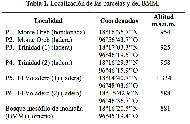 El bosque mesófilo de montaña (BMM) en México ocupa menos del 1% del territorio nacional, siendo el tipo de vegetación de menor superficie a nivel mundial debido a que sus condiciones climáticas se encuentran en zonas restringidas, por lo que su distribución es limitada y fragmentaria. Se localiza a lo largo de la vertiente este de la Sierra Madre Oriental, desde el sur de Tamaulipas hasta el norte de Oaxaca y en algunas áreas del Macizo Central y la Sierra Madre de Chiapas (Rzedowski, 1981). De acuerdo a CONABIO (2010) se tiene un área de 8 809 km2 de la cual alrededor del 50% ha tenido cambios de uso del suelo.
