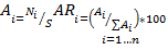 Donde Ai es la abundancia absoluta, ARi es la abundancia relativa de la especie i respecto a la abundancia total, Ni es el número de individuos de la especie i, y S la superficie de muestreo (ha).