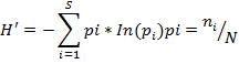Donde S es el número de especies presentes, In es el logaritmo natural y pi es la proporción de las especies, ni es el número de individuos de la especie i y N es el número total de individuos. Ambos índices cuentan con el mismo significado de variables.