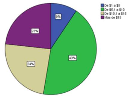 De acuerdo a la información recogida se observa que el mayor porcentaje de personas consultadas con un 43%, asigna un presupuesto de $5,1 a $10 para la compra de peluches; personas consultadas con un 24%, asigna un presupuesto de $10,1 a $15, por otro lado, el 23% asigna un presupuesto mayor a $15. (Gráfico 3)