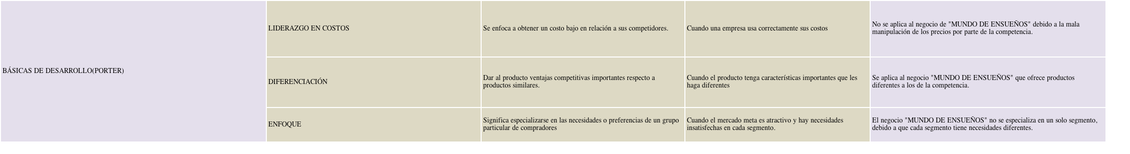 Como resultado, Porter (2013) sugiere que mediante la aplicación de estrategias genéricas los negocios de forma específica, las que pertenecen al sector terciario tratan de utilizar sus ventajas competitivas en los mercados o fragmentos de mercado establecidos como objetivos estratégicos. (Tabla 1)