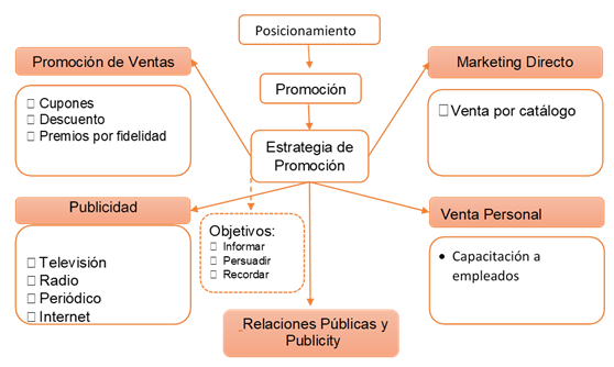 herramientas promocionales para el mejoramiento del posicionamiento que beneficie a la empresa así como al mercado objetivo, tales como: Promoción de ventas, Publicidad, Relaciones públicas y publicity, Venta personal y Marketing directo, las cuales forman parte de la estructura de la propuesta.