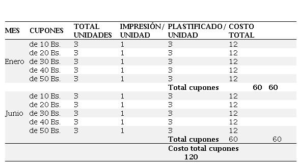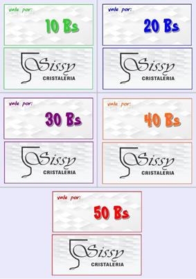 Una vez que el cliente usase el vale certificado, se devuelve el cupón al personal. A continuación se presenta el diseño de los cupones o vales certificados que se otorgaron, diferenciando cada cupón por colores de acuerdo al precio: