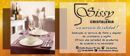 Tal es el caso de La Cristalería “SISSY”, una empresa potosina, que se creó con el propósito de generar ingresos para el hogar; es una empresa Unipersonal dedicada al flete y alquiler de Cristalería y Vajilla, tiene 29 años de vida en este medio, actualmente tiene más de 20 productos para fletar y alquilar, para lo cual cuenta con: Champaneras, Cocteleras, Cerveceros, Chuflayeras, Vineras, Wisqueras, Gelatineras, Platos, Cubiertos, Jarras, Tazas, Platillos, Paneros, Lecheras, Azucareras, Hieleras, Pinzas, Fuentes de Vidrio, Soperas, Charolas, Floreros, etc.