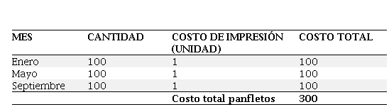 Los panfletos serán impresos, durante los meses establecidos, en la misma cristalería, ya que en la imprenta solo hacen por cantidad.