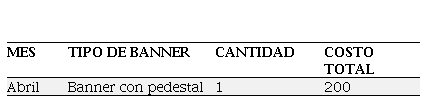 Se utilizará este instrumento con el fin de apoyar en algunos eventos o acontecimientos de interés general. Ya que las instituciones, como la Alcaldía y Gobernación (clientes de la cristalería), tengan algunos eventos, la Cristalería “Sissy” patrocinará el evento de manera que muchas otras instituciones conocerán el servicio. Así también existen eventos como La Mujer Emprendedora, Fiposí, Feipobol, eventos de moda, etc., será oportunidad para que la cristalería también patrocine estos eventos. Es por eso que la cristalería comprará un banner en el mes de abril para el uso en los diferentes eventos.