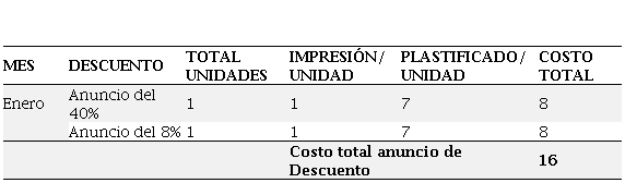 A continuación se presenta el diseño de los anuncios de descuento a la vista del cliente: