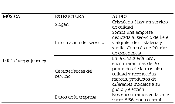 Se definió una propuesta basada en la elaboración de una estrategia de promoción para posicionar la Cristalería “Sissy” afín de ayudar a la empresa a darse a conocer en la ciudad de Potosí.