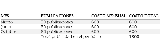 Por tanto se publicará un anuncio en el Baúl a full color, del tamaño de 3X2 (11cm x 6,7 cm), durante los meses de marzo, junio y octubre.