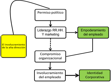 Liderazgo de recursos humanos y marketing. Establecimiento de vínculos entre las áreas por medio de las siguientes acciones: