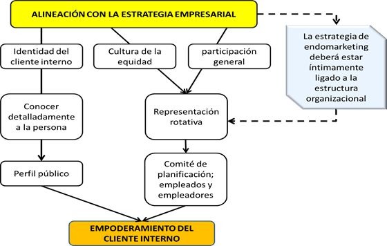 La elaboración de una estrategia de endomarketing debe tomar en cuenta la comunión entre esta básica herramienta y la fidelización del cliente interno, de tal forma se genere y se desarrolle escenarios de empoderamiento, compromiso, los necesarios para mejorar niveles de rendimiento expectables par la empresa como plena satisfacción para los clientes internos.